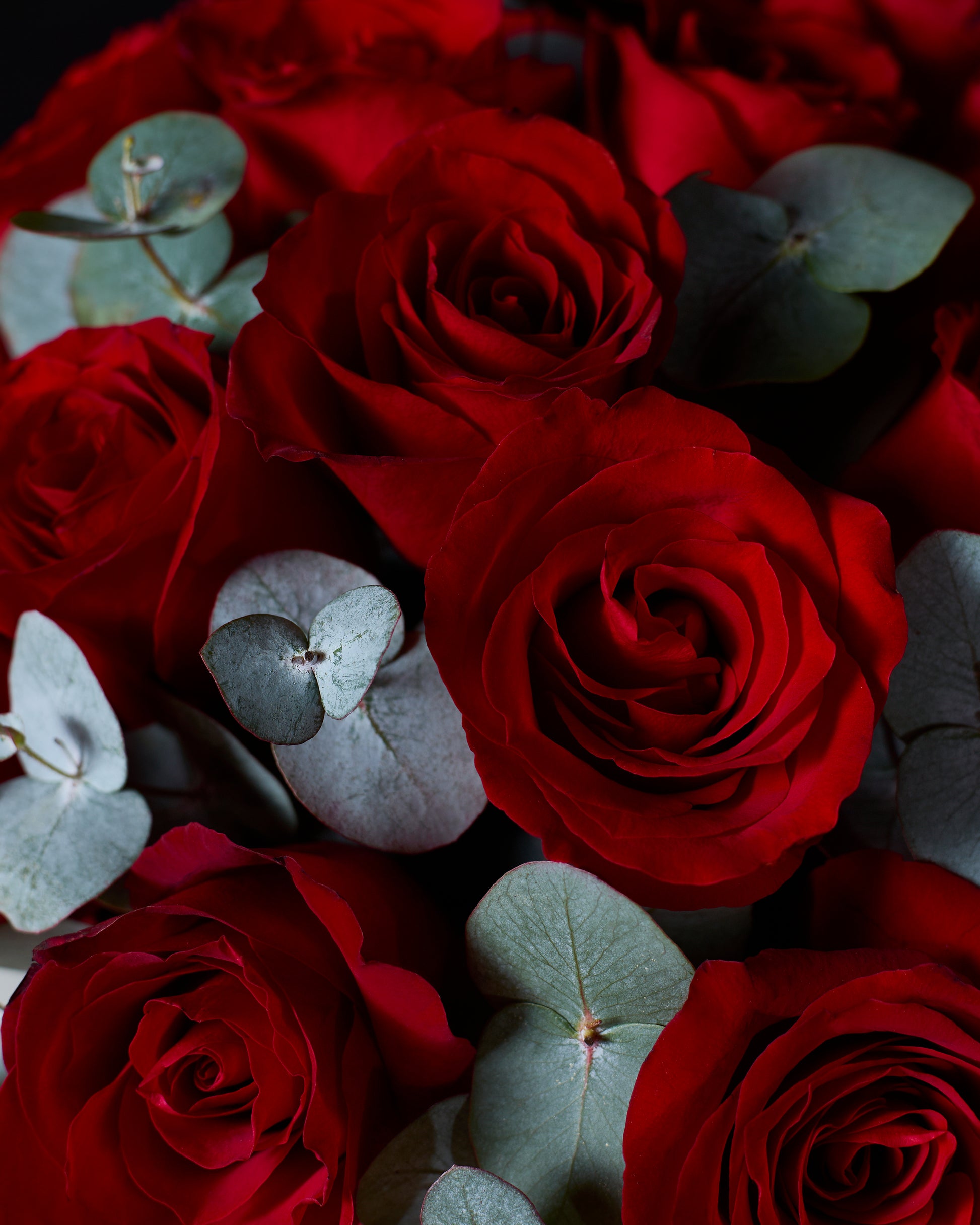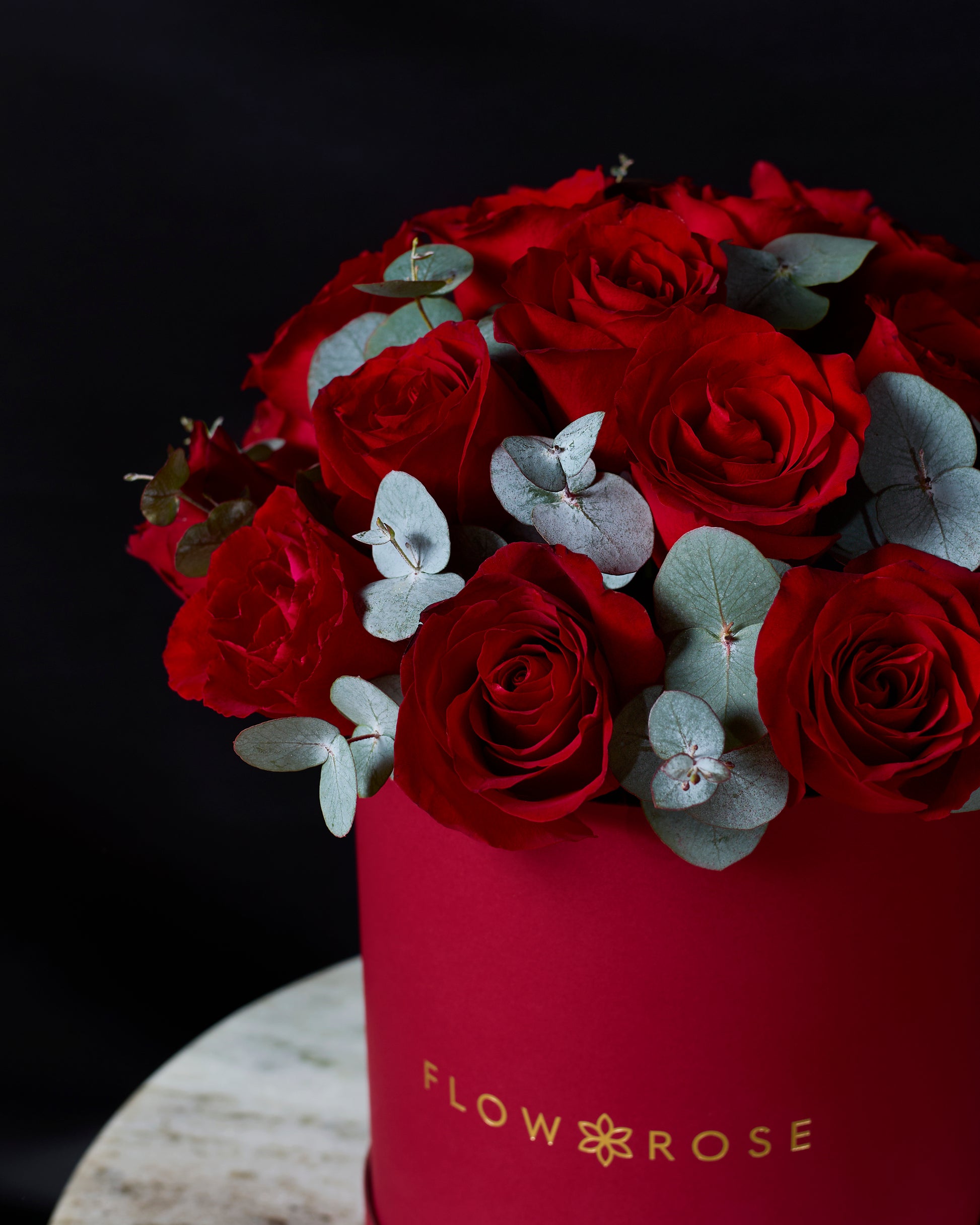 Bonita is a classic arrangement of velvety red roses complemented by fresh eucalyptus. Simple yet striking, this design highlights the beauty of contrast and natural elegance. Presented in our signature hatbox, Bonita is a graceful expression of love, effortless, timeless, and beautifully refined.