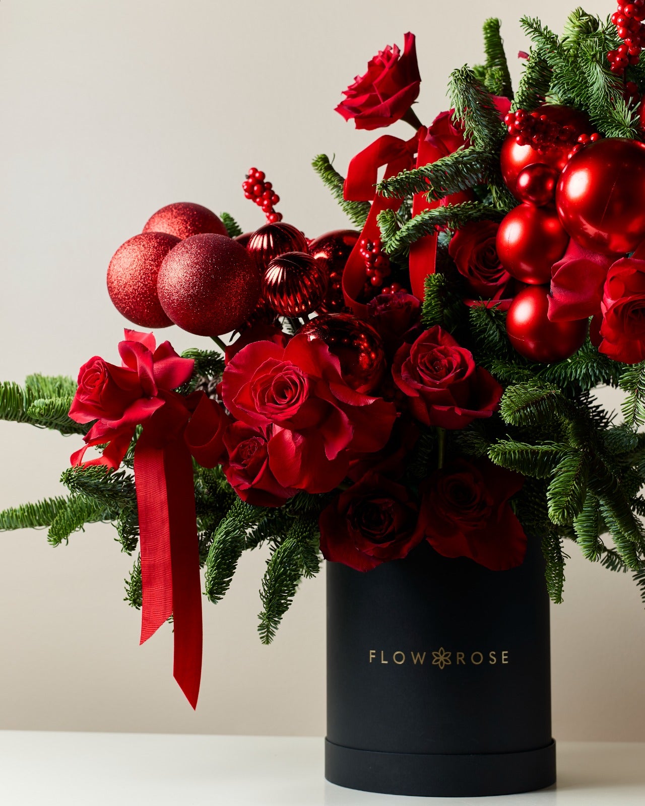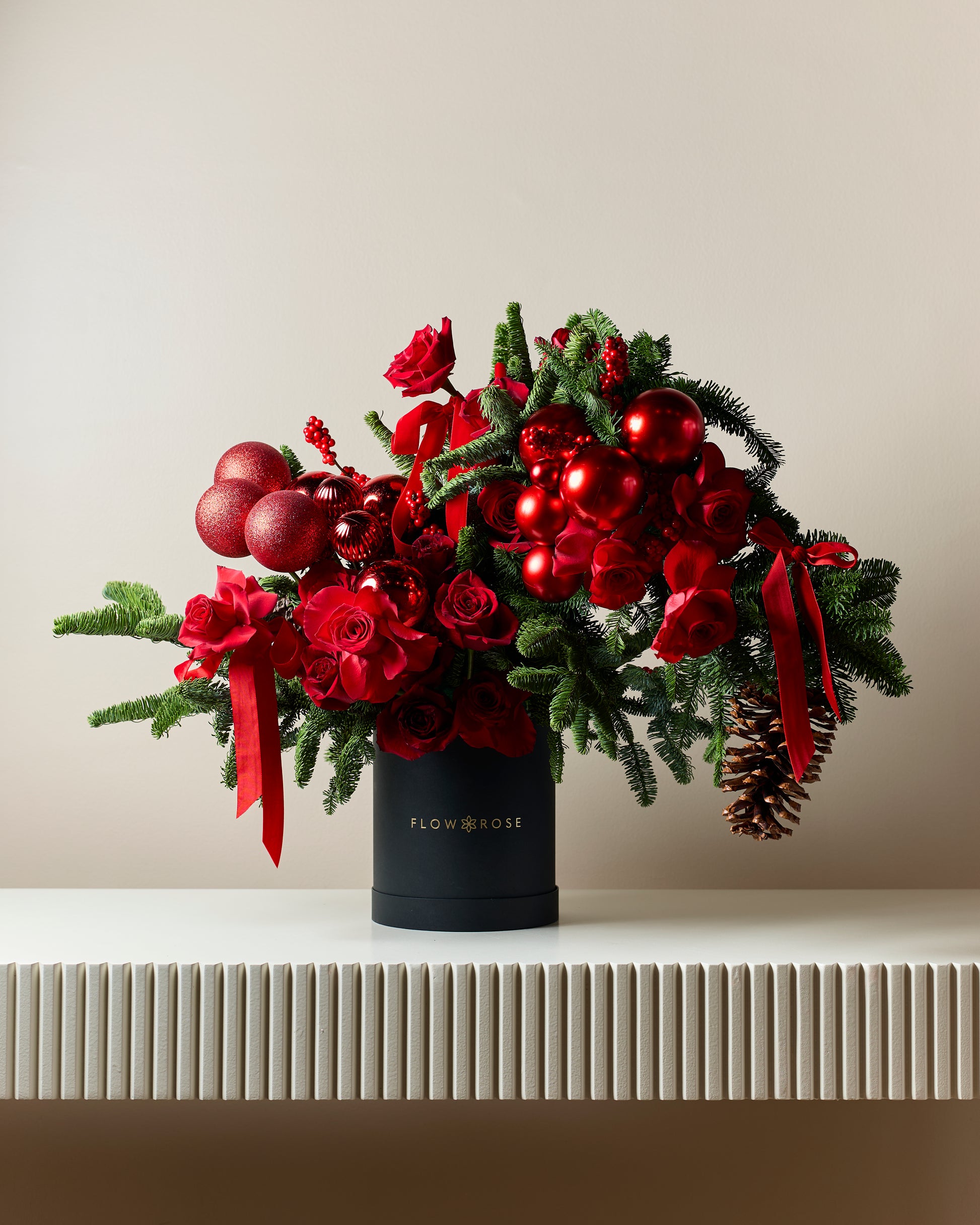 Evergreen Charm blends premium red roses with lush festive greens for a refined Christmas centerpiece. Designed for those who appreciate classic holiday elegance, this arrangement offers depth, richness, and timeless seasonal beauty. Ideal for gifting or enhancing your home with a luxurious Christmas touch.