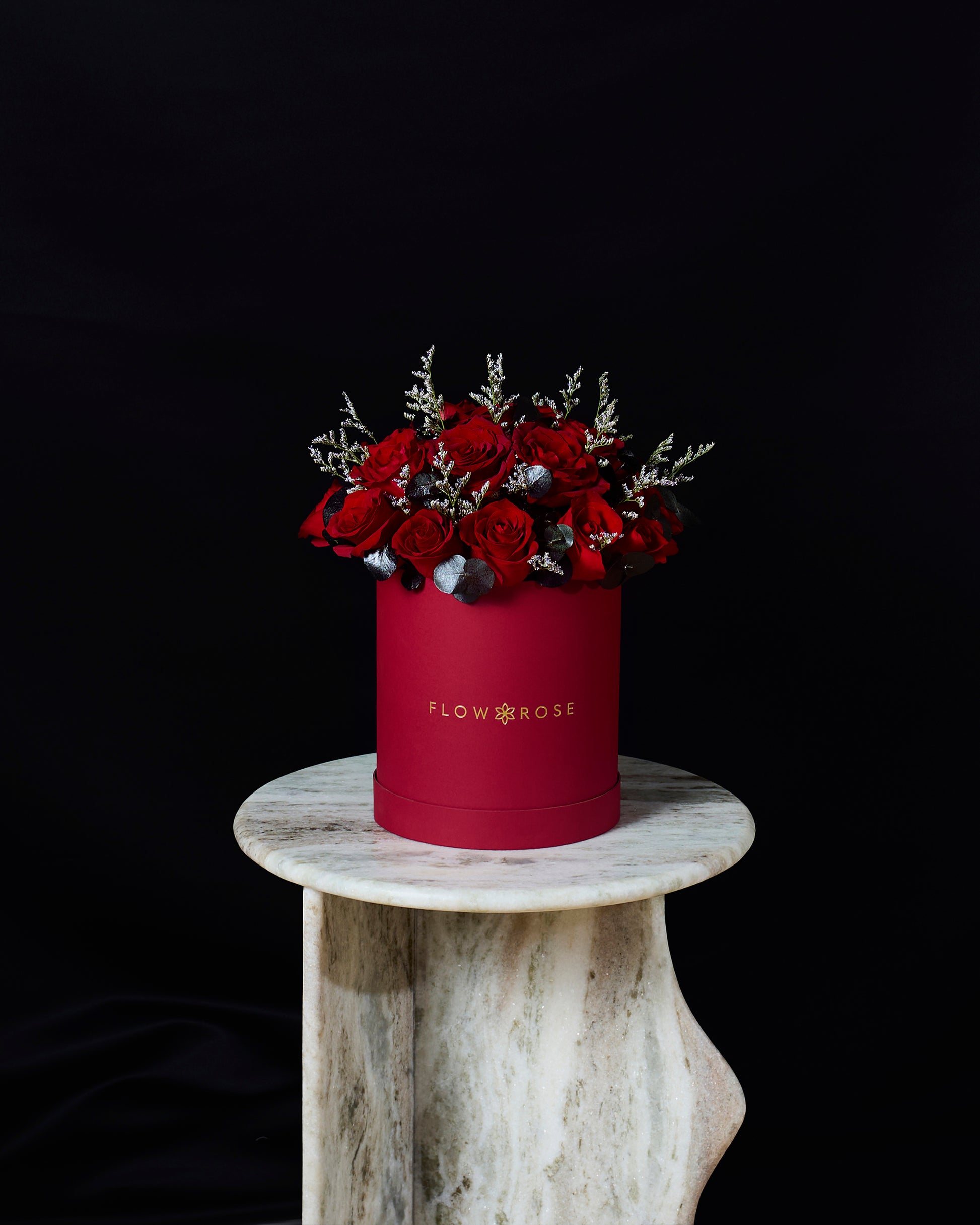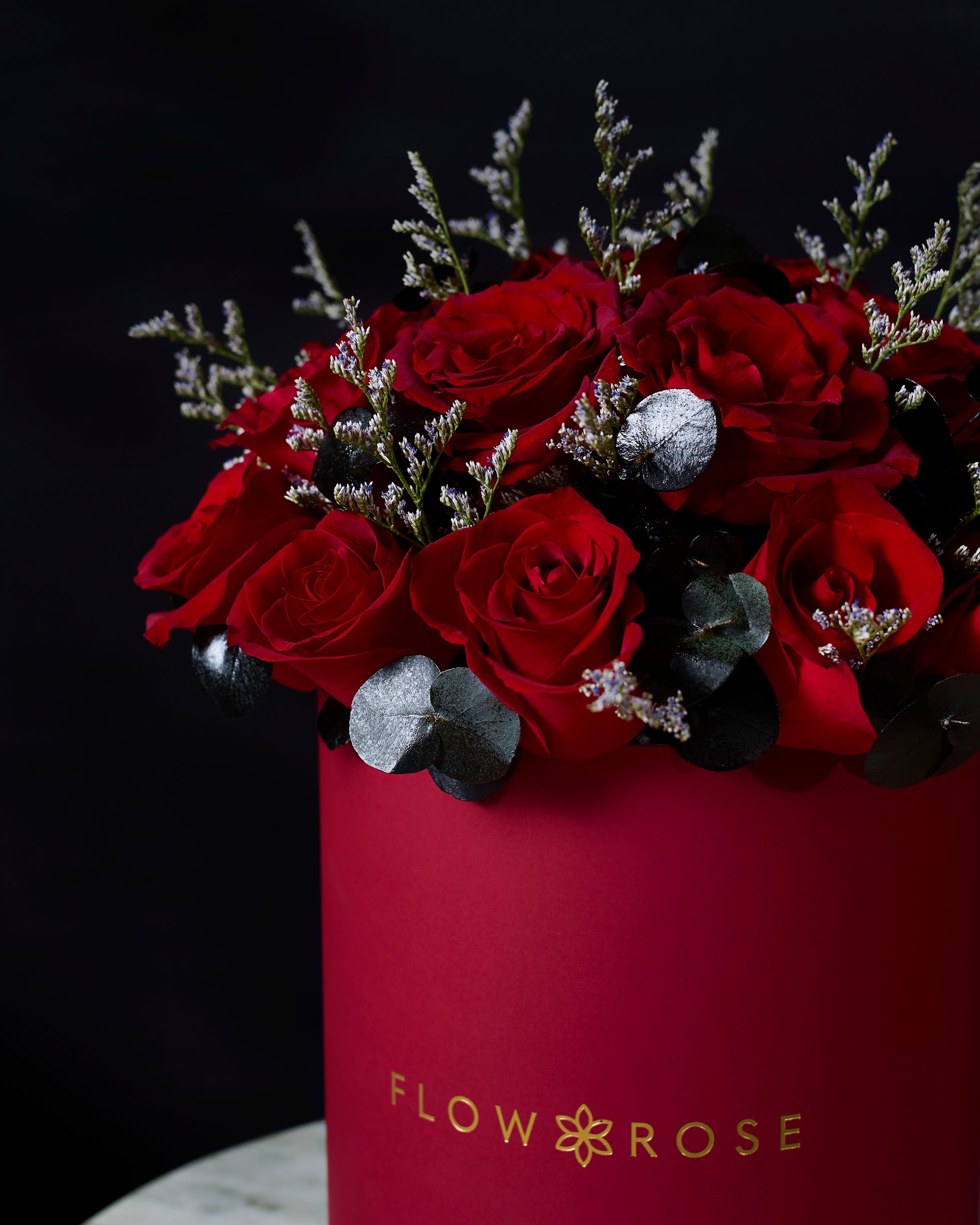 Habibi is a timeless arrangement of classic red roses, beautifully accented with fresh eucalyptus and soft silver limonium. The blend of rich red and cool silver tones creates a graceful expression of love and devotion. Presented in our signature hatbox, Habibi is a meaningful gesture, simple, elegant, and full of emotion.